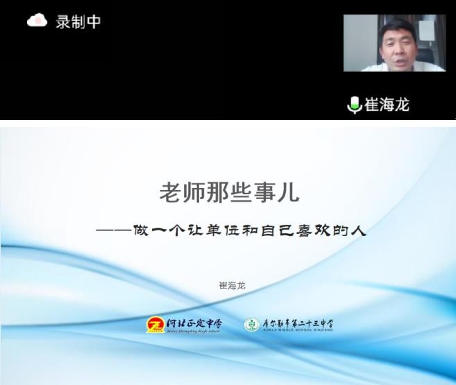 5月13日晚,河北正定中学副校长、河北省优秀教师崔海龙应邀通过腾讯会议的形式,面向大四、大三年级和研究生毕业年级开展了题为《老师那些事儿——做一个让单位和自己喜欢的人》就业领航讲座。崔校长2002年本科毕业于永利 心理学专业,同年至河北正定中学任教,先后荣获石家庄市心理健康教育先进教师,市师德先进个人,市骨干教师、学科名师、市优秀科研工作者、河北省优秀教师、河北省中小学优秀德育课教师等荣誉称号,2019年12月开始援疆工作,任新疆库尔勒市第二十三中学副校长。2022年5月被新疆维吾尔自治区授予“开发建设新疆奖章”。