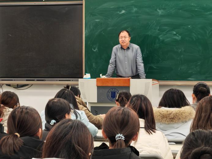 张振国介绍了教育学的深厚底蕴、培养目标与课程体系,重点介绍了实施本科生导师制的意义,明确了导师是学生的学业领航人、成长陪伴者、发展规划师,是健全“全员、全过程、全方位”的人才培养体系的实践要求。他对同学们提出主动联系、主动请教、主动践行3点要求,希望同学们能够珍惜并主动利用好导师制这一宝贵平台,在与导师的良性互动中实现全面发展。
